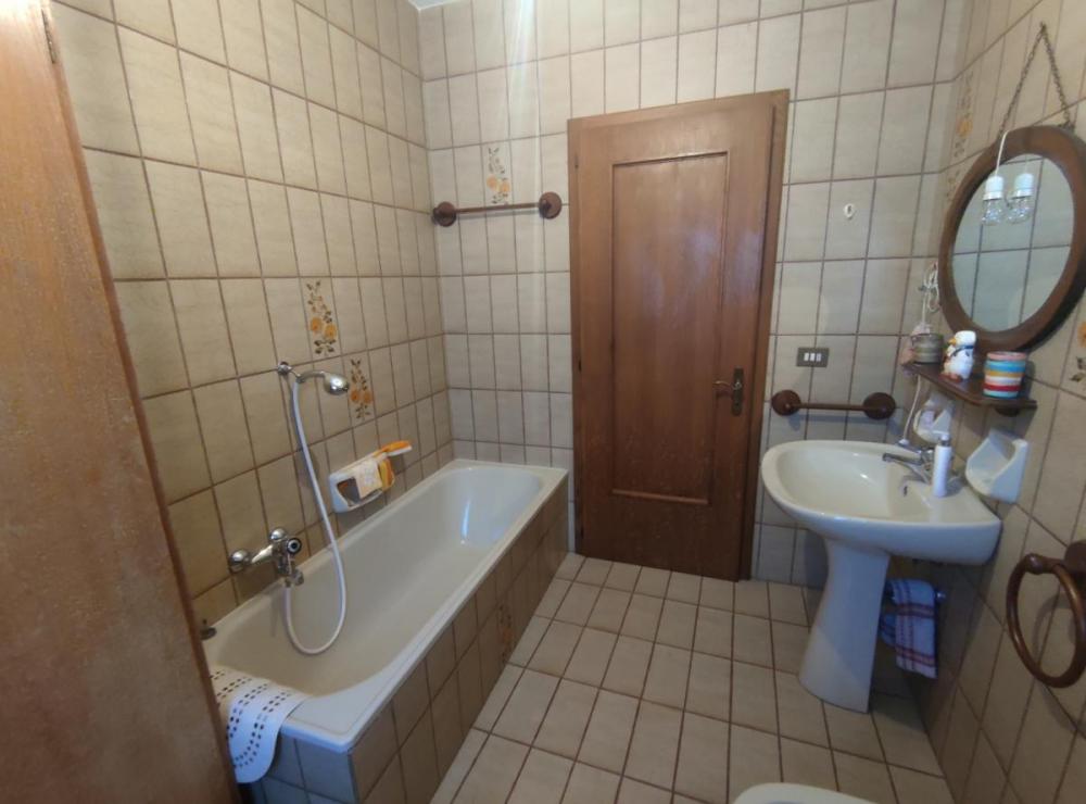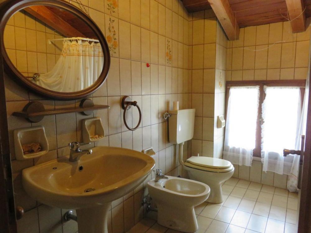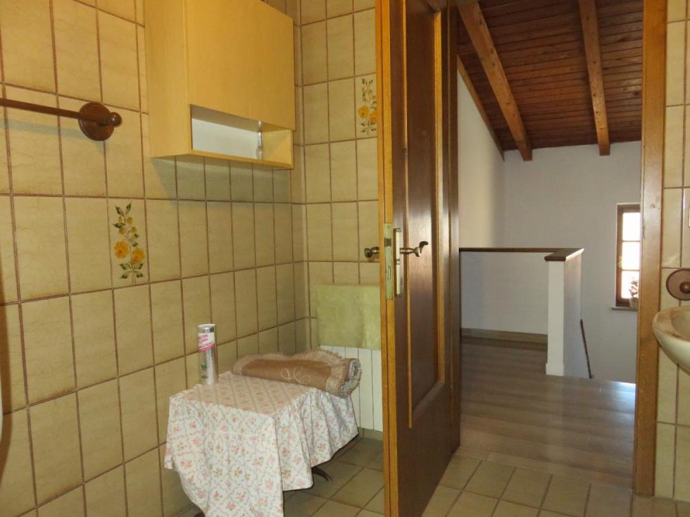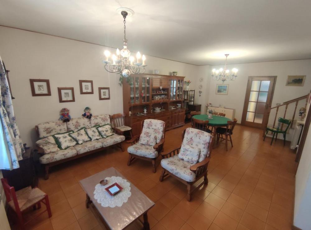 Fraz. Piovega, servitissima zona - casa in linea disposta su tre livelli con ingresso, cucina/soggiorno, lavanderia e rimessa al piano terra; due camere, bagno, ripostiglio e terrazzo al piano primo, mentre il secondo piano, mansardato, si completa con due camere, il secondo bagno ed un ripostiglio. L'immobile risulta edificato ad inizio anni '80, con impianti e finiture dell'epoca, caldaia di recente sostituzione (2019) a gas metano. Classe Energetica F Epgl 151,12 kwh/mq anno.